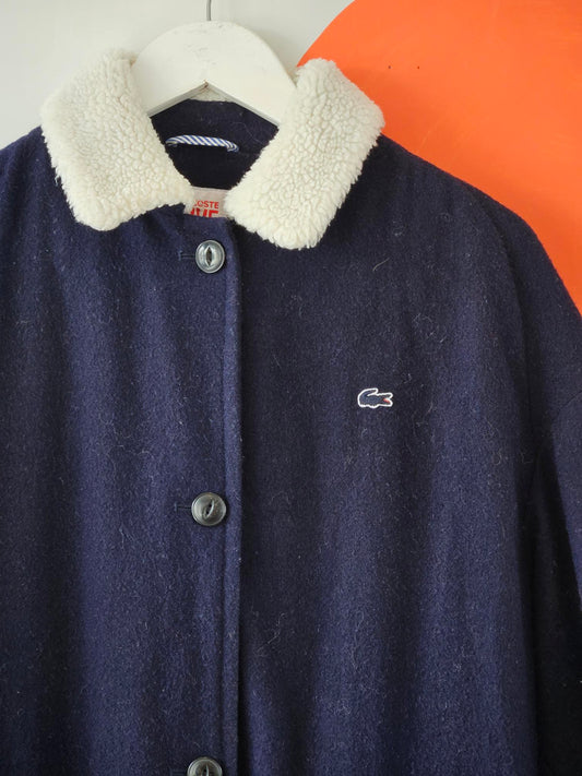 Navy Wool Blend Coat with Faux Fur Collar