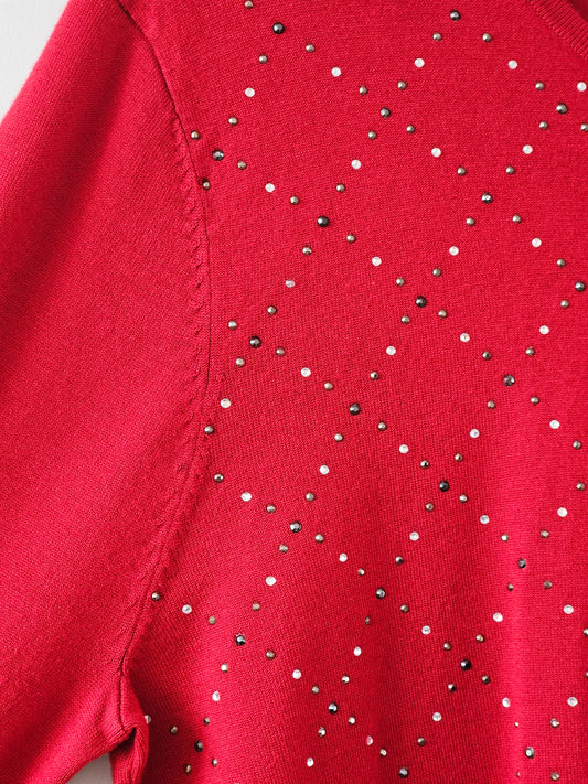 Red Embellished Knit Sweater