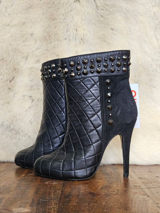 Studded Black Leather Heeled Boots