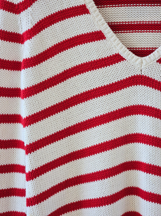 Red-White Striped Cotton Knit Sweater