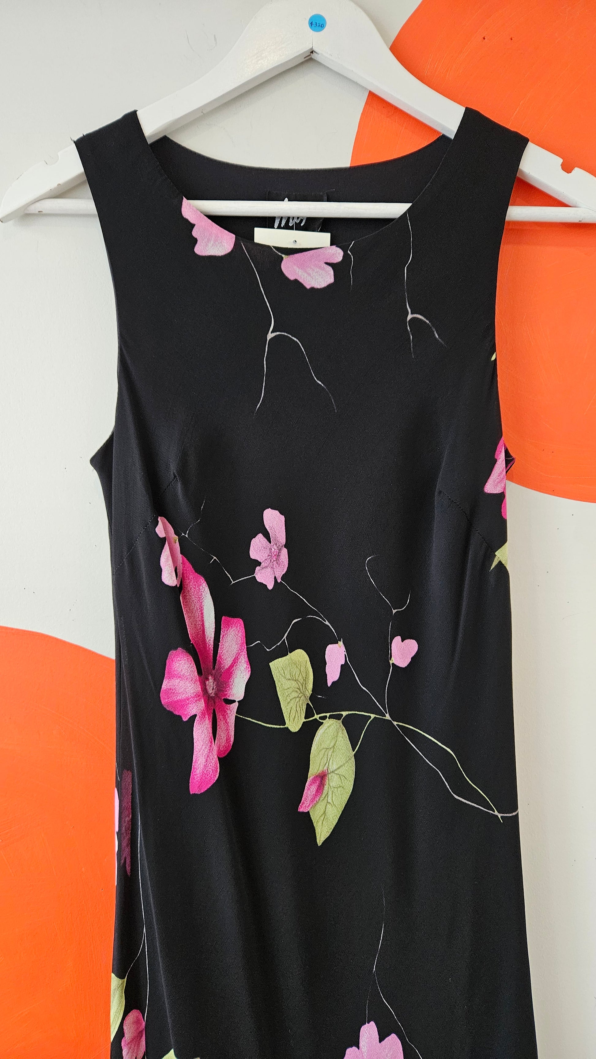 Black, lightweight fabric with floral pattern