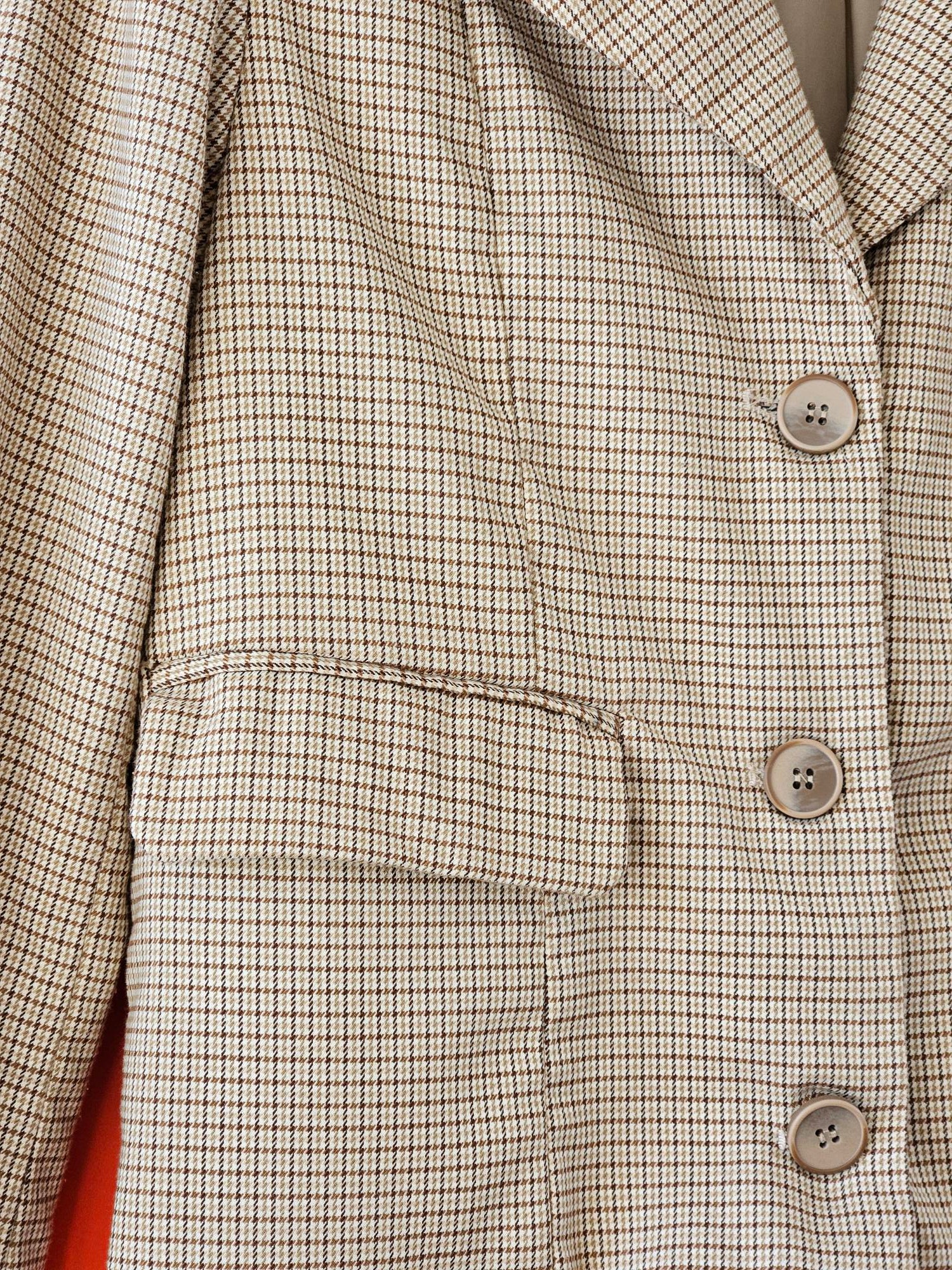 Beige Plaid Blazer & Shorts Set